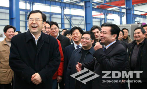 孫志剛副省長認真的參觀了中德機床一萬平方的裝配車間,他關切的詢問了鄭總關于中德機床的歷史來源,生產(chǎn)銷售情況,以及市場前景。鄭總也很熱情的向?qū)O志剛副省長匯報了情況:中德機床歷史十余年,名字的寓意是我公司是中國的企業(yè)但是目標是為追求德國卓越的產(chǎn)品品質(zhì)以及體現(xiàn)我公司“以德治企”的管理理念。公司近幾年來的快迅發(fā)展,雖然離不開公司一直以來的勵精圖治工作態(tài)度,更離不開的是省內(nèi)外發(fā)展的大背景,和中國開放的國際眼光。中德機床內(nèi)貿(mào)外貿(mào)并舉,業(yè)績逐年穩(wěn)步上升,勢頭良好。孫志剛副省長頻頻微笑點頭,對中德機床的企業(yè)狀況感到欣慰。同時,孫志剛副省長也激勵我公司,一定要抓住機遇,繼續(xù)發(fā)展。